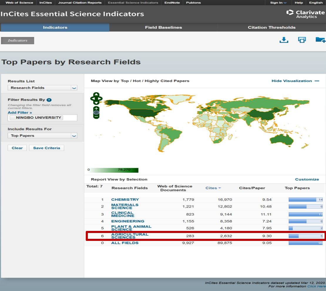 根据科睿唯安(Clarivate Analytics,原汤森路透)2020年3月最新发布的ESI数据,我校农业科学(AgricultureSciences)首次进入ESI全球排名前1%,标志着我校农业科学学科(领域)进入世界高水平学科行列。