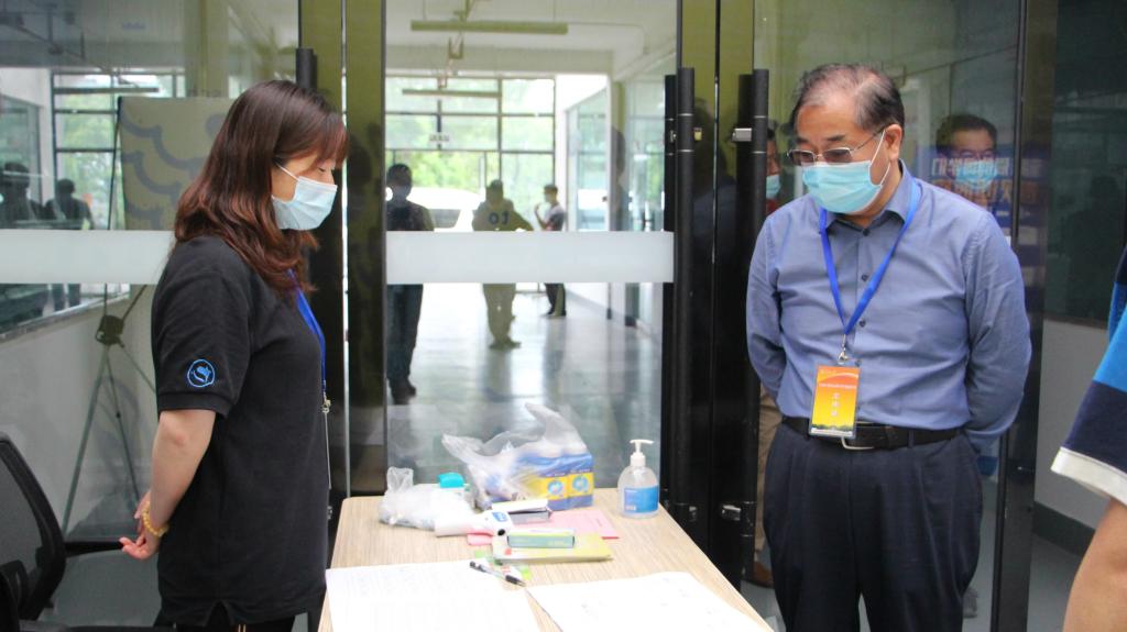 最后,沈满洪一行走访了植物园校区,看望慰问了校区工作人员,听取了植物园校区建设、春季开学和疫情防控相关工作汇报。沈满洪一行还走访了植物园校区学生宿舍,详细了解宿舍管理流程和学生入住情况,并检查了宿舍隔离点的设置情况。